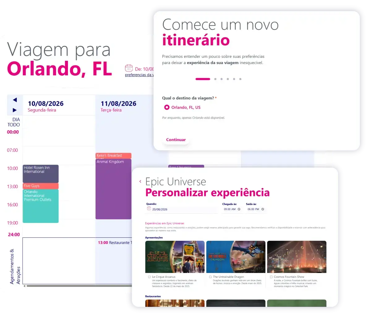 Se está planejando visitar Orlando, iremos ajudar você a criar um itinerário personalizado. Explore tudo o que a cidade tem a oferecer - desde parques temáticos famosos até atrações locais, compras, gastronomia e muito mais para aproveitar ao máximo sua viagem.